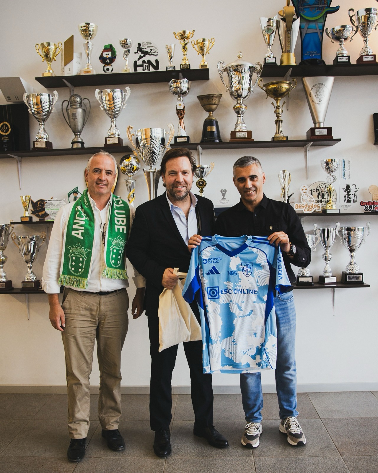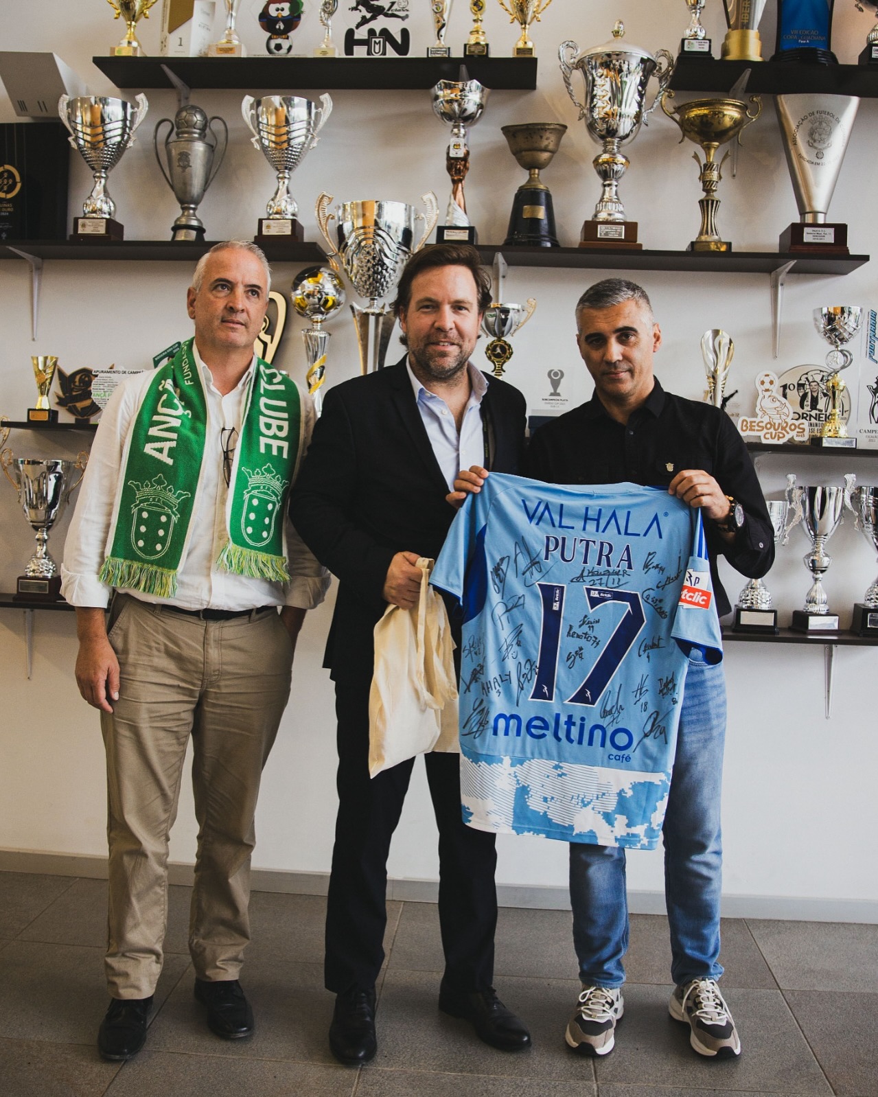 Dar nota de que, toda a receita gerada na partida será para o Ançã FC. Putra, estamos todos contigo”, escreveu a turma de Pina Manique. Os “gansos” deram revelaram o gesto solidário, com uma fotografia na qual o CEO, Tiago Lopes, entrega uma camisola autografada pelo plantel ao presidente do”ferryaço”, João Garrido, e ao presidente da Junta de Freguesia de Ançã, Cláudio Cardoso. A camisola tem precisamente o nome de “Putra” e parte do valor será para auxílio à recuperação.