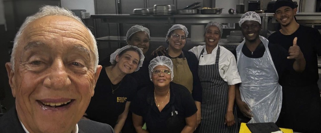 Antigo Presidente da República tirou fotografias com o staff da cervejaria | Fotografia: Cervejeira Praxis