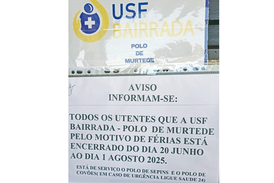 Quase um mês e meio é tempo que o polo de Murtede da USF Bairrada, no concelho de Cantanhede, vai estar encerrado devido a férias dos profissionais. O aviso foi afixado na porta daquele serviço, dando conta que a USF estará fechada “por motivo de férias” a partir de amanhã até ao dia 1 de agosto. Quem precisar de ser assistido deverá dirigir-se ao polo de Sepins, ao polo dos Covões ou ligar para a Linha Saúde 24, em caso de urgência.