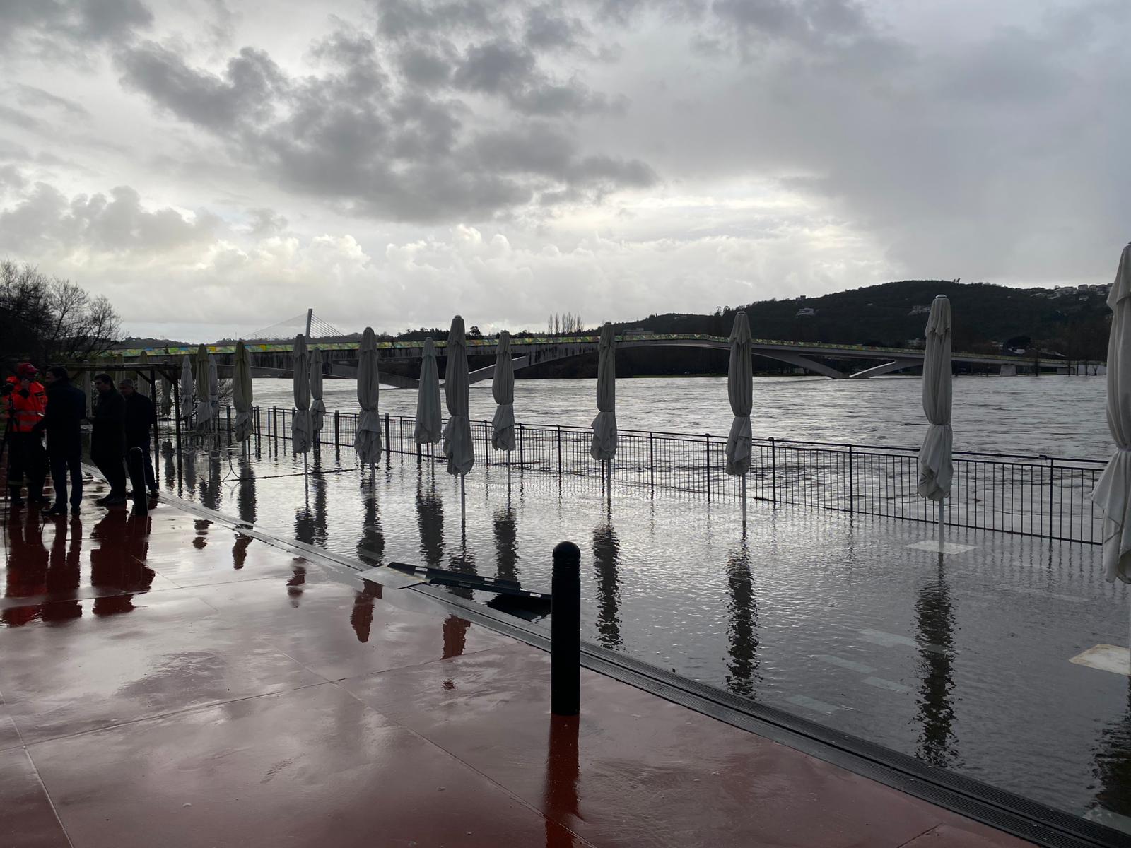 Rio Mondego já chegou às esplanadas das Docas de Coimbra