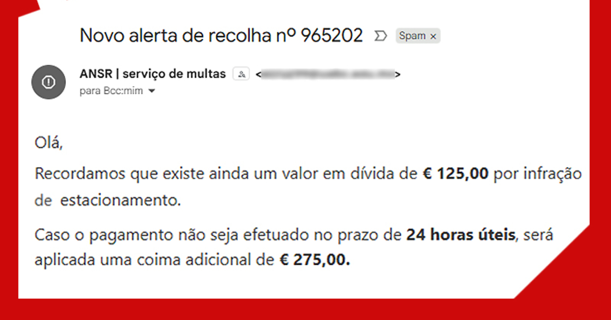 A Autoridade Nacional de Segurança Rodoviária (ANSR) alertou hoje que estão a ser enviados ‘e-mails’ fraudulentos em seu nome para o pagamento de coimas, nos quais é pedido que se carregue num ‘link’, o que não deve ser feito.