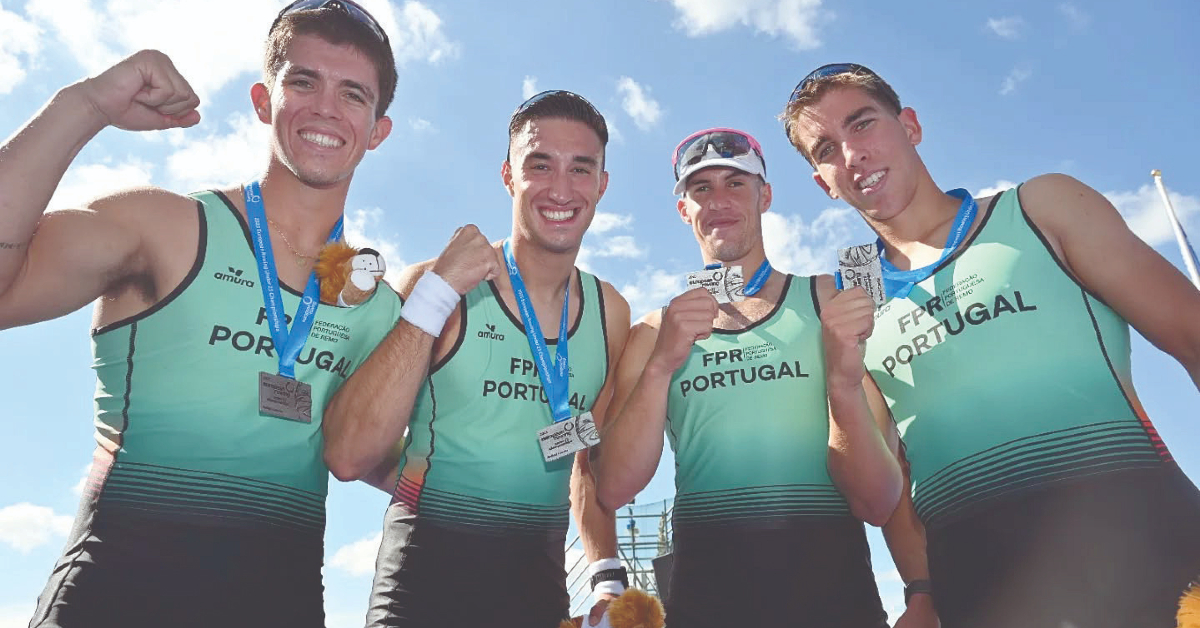 Os remadores Afonso Santos e Pedro Rodrigues (Naval Remo) e Tomás Neves (Académica) integraram, ontem, com Diogo Gonçalves (Fluvial Portuense) a tripulação que conquistou a medalha de prata em quadriscull (BM4x) dos Campeonatos Europeus Sub-23 de remo, a decorrer na República Checa.