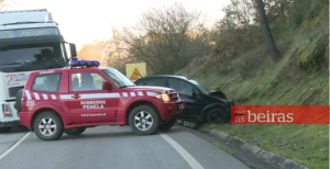 Do mesmo acidente resultou um ferido grave (ocupante do ligeiro) e um ferido ligeiro (motorista do pesado).
